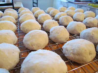 (If you want to freeze them for later, freeze them after rolling in confectioner's sugar the first time, then dust them with more sugar after they're thawed.)